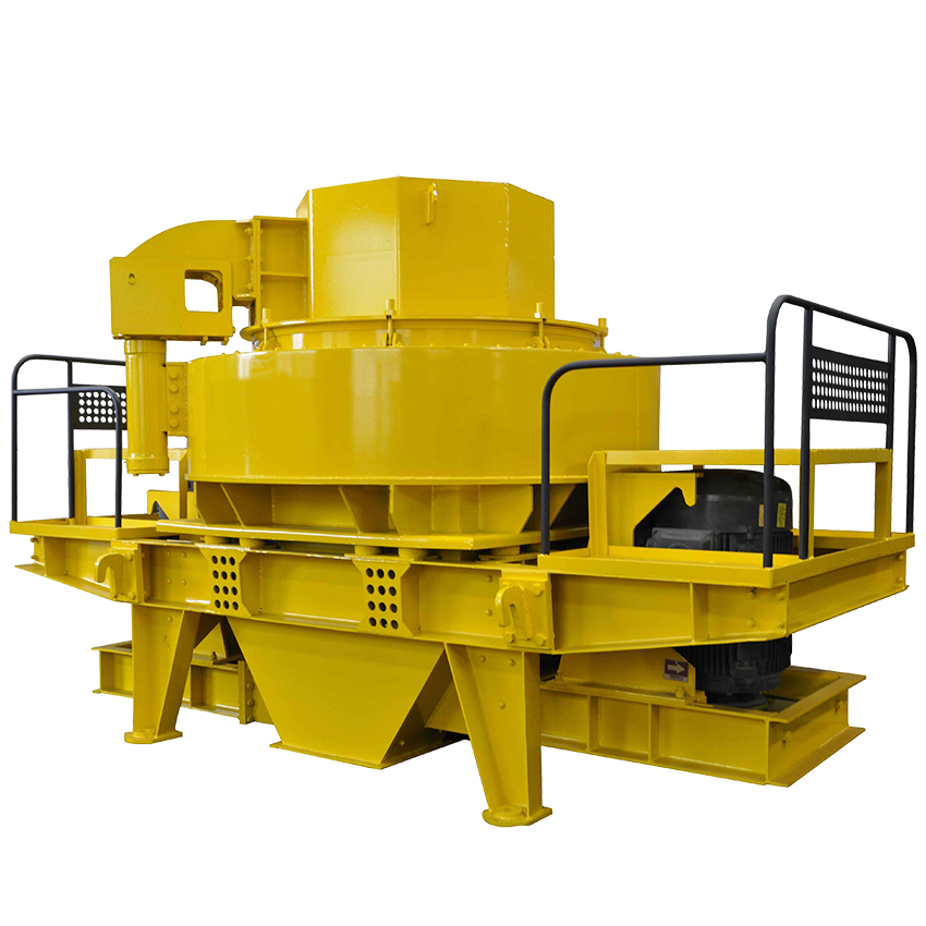 轉子離心式立軸制砂機的機體和驅動裝置已整體安裝在機座上。大型機蓋采用液壓升降裝置開啟并可旋轉360度,以便于更換耐磨部件。