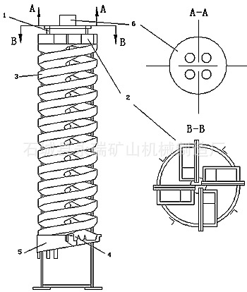 8、螺旋溜槽基礎一般不需要固定,但要放在同一水平的四個(三個)平面基礎上,安裝后,要檢查螺旋槽的豎軸線是否鉛垂,可以在立柱下面加墊片調整鉛垂度。螺旋溜槽要在適當高度處設操作平臺,螺旋溜槽支柱與平臺需適當聯(lián)接。
