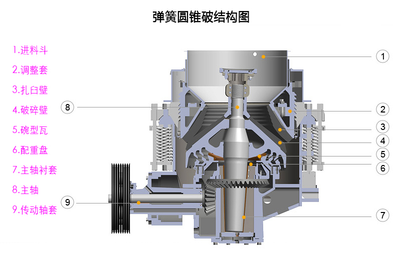 隨著礦山技術(shù)的不斷發(fā)展,圓錐破碎機(jī)也分為好幾種,按照種類(lèi)包括彈簧圓錐破碎機(jī)、軋臼式圓錐破、液壓圓錐破碎機(jī)以及復(fù)合圓錐破。