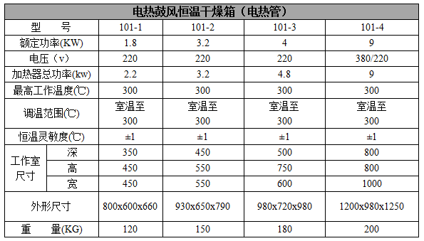101型是帶鼓風和恒溫的電熱干燥箱,有數字智能型顯示和指針顯示兩種,本產品采用國家經委重點推廣的節能環保加熱新技術,當它被加熱物體吸收時可直接轉變為熱能,從而獲得快速干燥效果,達到縮短生產周期,節約能源,提高產品質量等目的。 使用方便、效果顯著,是一種理想的有廣闊前景的干燥設備。適用于工農業生產、科學研究、醫療衛生等單位化驗室對試品的烘干、熱處理、烘焙、熔臘、滅菌和加溫,但不適用于揮發性、易燃易爆等物品,以免引起爆炸。