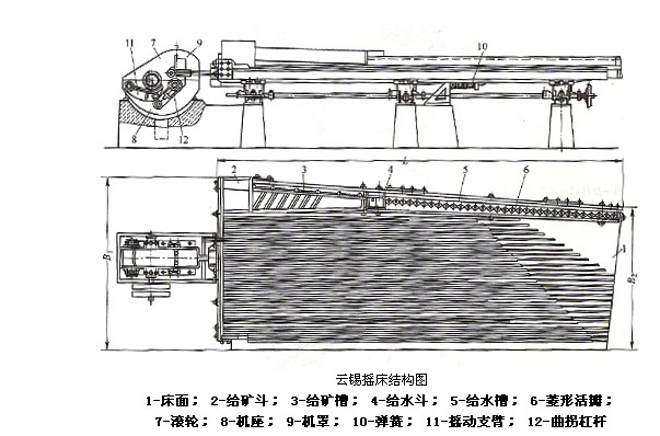 它能選別2毫米以下的各種有色金屬的重選與精選。經(jīng)過多年的礦山生產(chǎn)實(shí)踐證明:云錫搖床具有性能穩(wěn)定,選礦效率高、平穩(wěn)、噪音小和使用維修方便等特點(diǎn)。