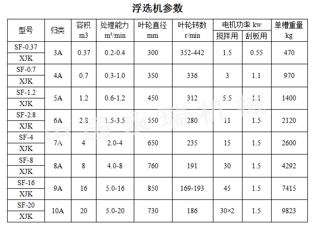 1、浮選機吸氣量大、功耗低。浮選機每槽兼有吸氣、吸漿和浮選三重功能,自成浮選回 路,不需任何輔助設備,水平配置,便于流程的變更。